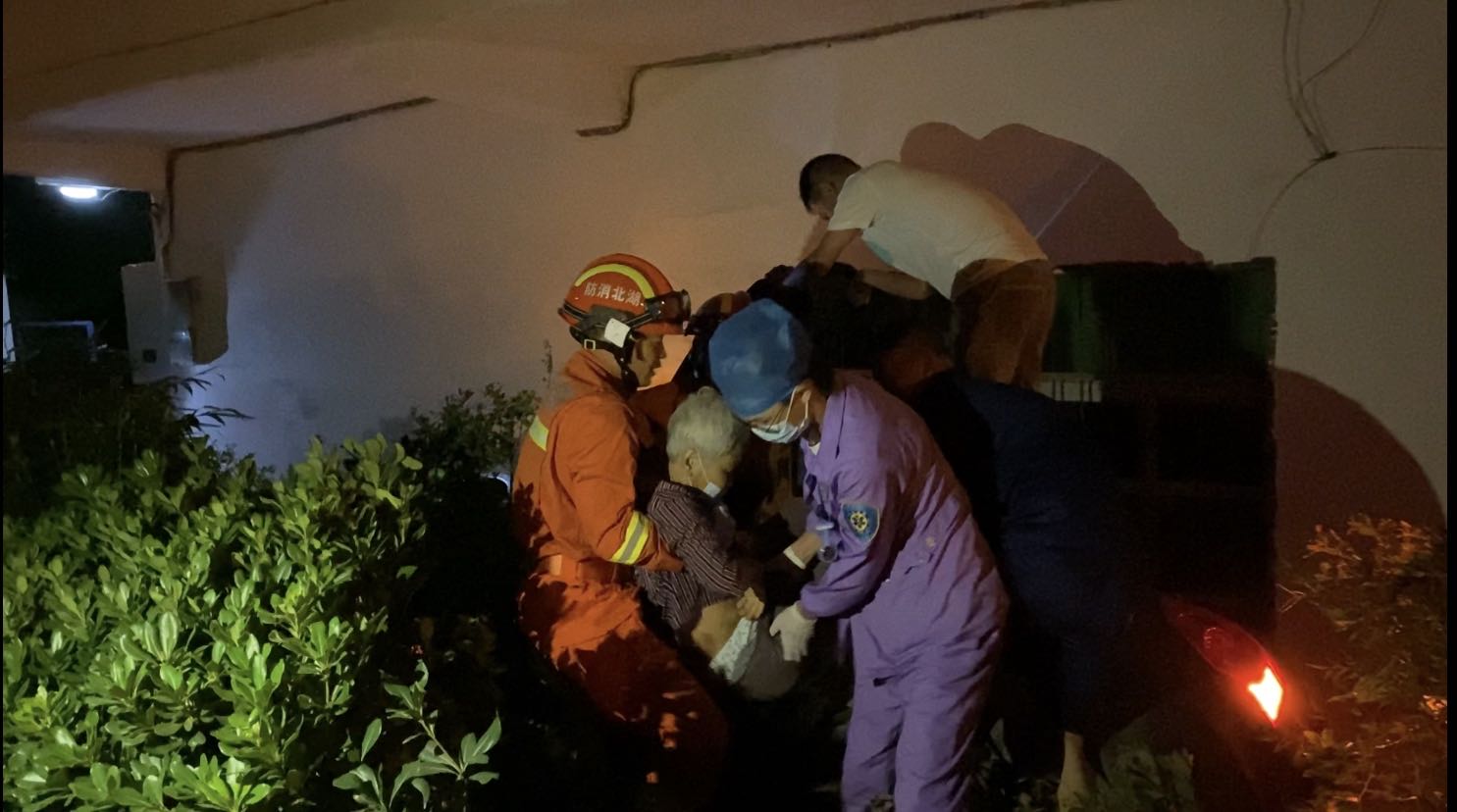 8月2号凌晨4点多,黄冈市浠水县清泉镇发生一起车祸。消防救援人员到达现场后发现,是一辆小轿车侧翻进了路边绿化带,两人被困后座。因车辆侧翻导致车门变形并且侧翻地点救援空间有限,难度增大。救援人员一边安抚被困人员情绪一边利用破拆工具破拆扩展救援空间实施救援,经过近20分钟的紧张救援,2名被困人员被成功救出并移交给现场医护人员。当事人王先生说,自己上坡时对向来车灯光照射太强烈导致眼前一黑,他本能踩刹车导致车辆侧翻。