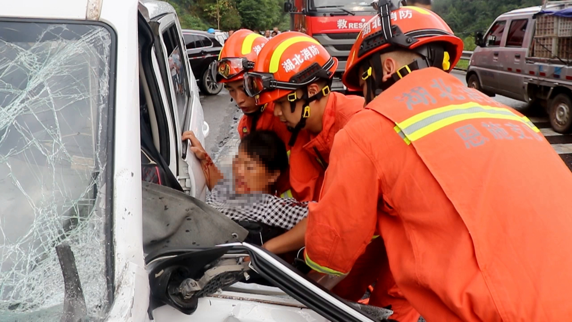 恩施咸丰:两车相撞六人被困 消防成功营救