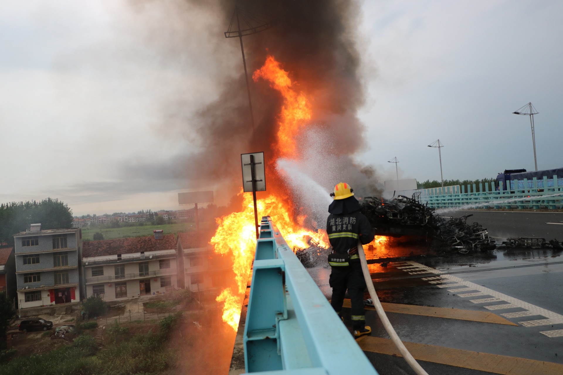 黄冈黄梅:半挂车高速起火 近500辆电瓶车全部烧毁