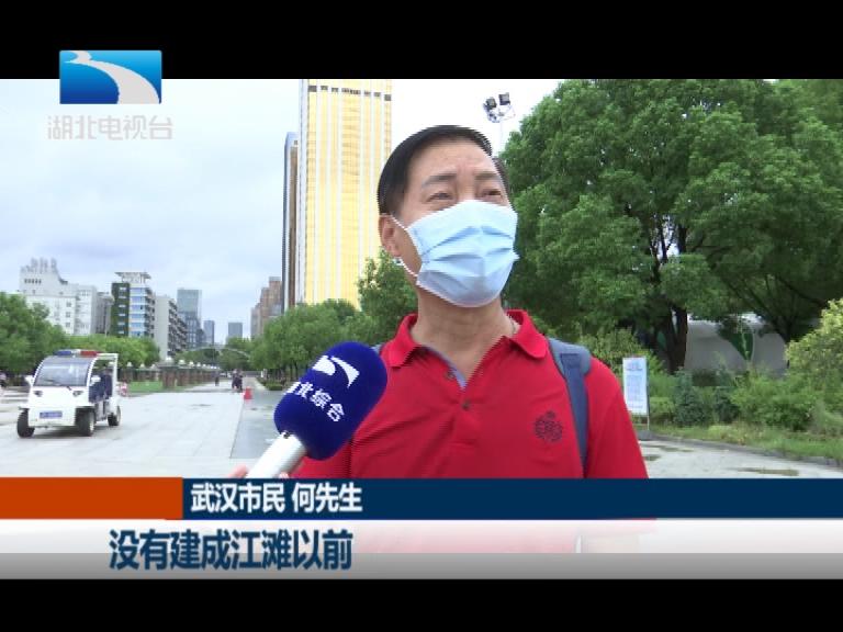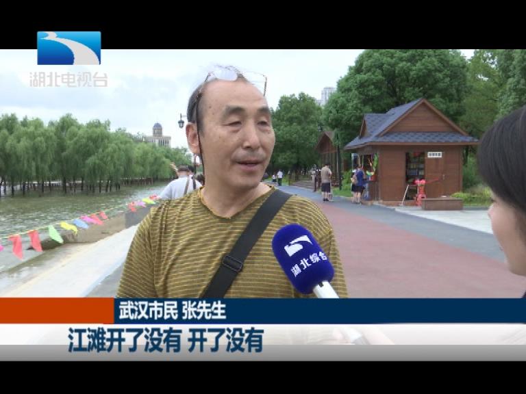 武汉市民 张先生:她老是在家就说,江滩开了没有,开了没有。今天一开,我们早上起来以后,吃了早点以后就说,我们出去转转,她很高兴。水跌了,心情很爽啊。好像呼吸可以饱和了,可以好好喘喘气。