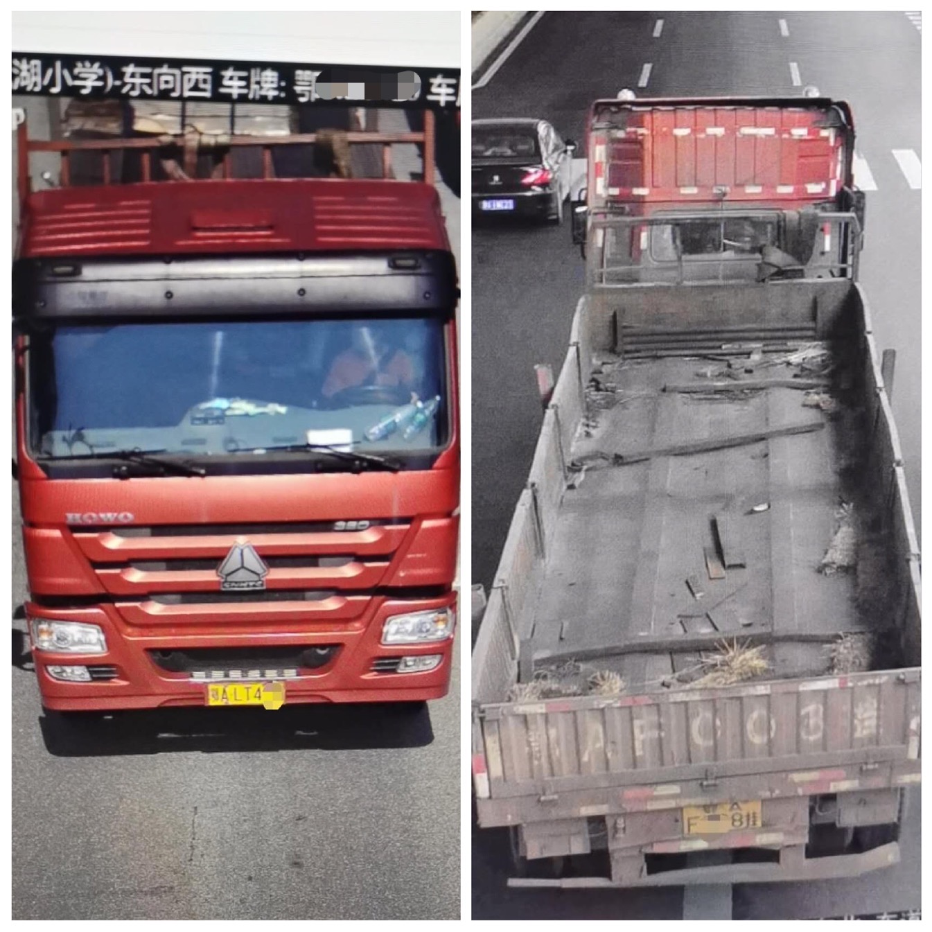 既然两辆车的挂车车牌是一样的,那么车头部分牵引车的车牌又是怎样的呢?民警凭借多年办案经验,结合重型半挂车所运输货物的种类,初步分析出了这对“双胞胎”车辆在辖区内的行驶规律。再顺藤摸瓜,终于找出了两台车的正面“身份照”。