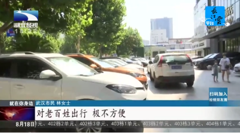 武汉市民林女士表示:这里的人行道原本连着一个广场,人行区域很宽敞,然而几年前广场变成了停车场,还占用了部分人行道,这肯定很不安全,车不应该停到这里,这是人走的地方,对我们老百姓出行极不方便。