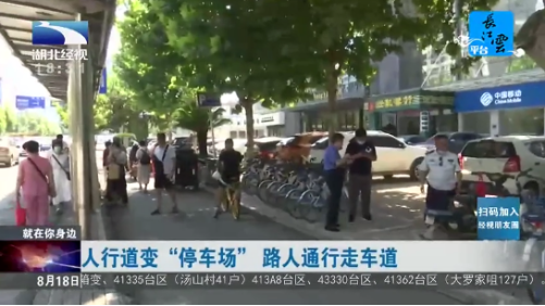 武汉市民:人行道被车辆占满,很不安全 城管部门:已要求停车场管理方配合调查处理