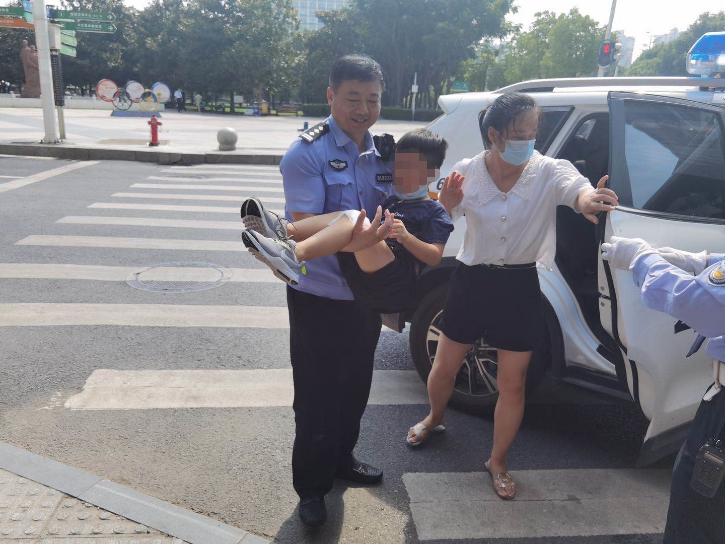 儿童游玩不慎摔伤 暖心交警护送就医