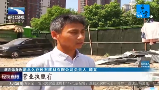 湖北久存砂石建材有限公司负责人表示谭某:我们晚上没动机械,几乎都是晚上9点半之前作业,10点钟之后我们没动机械,我们都是有营业执照的。