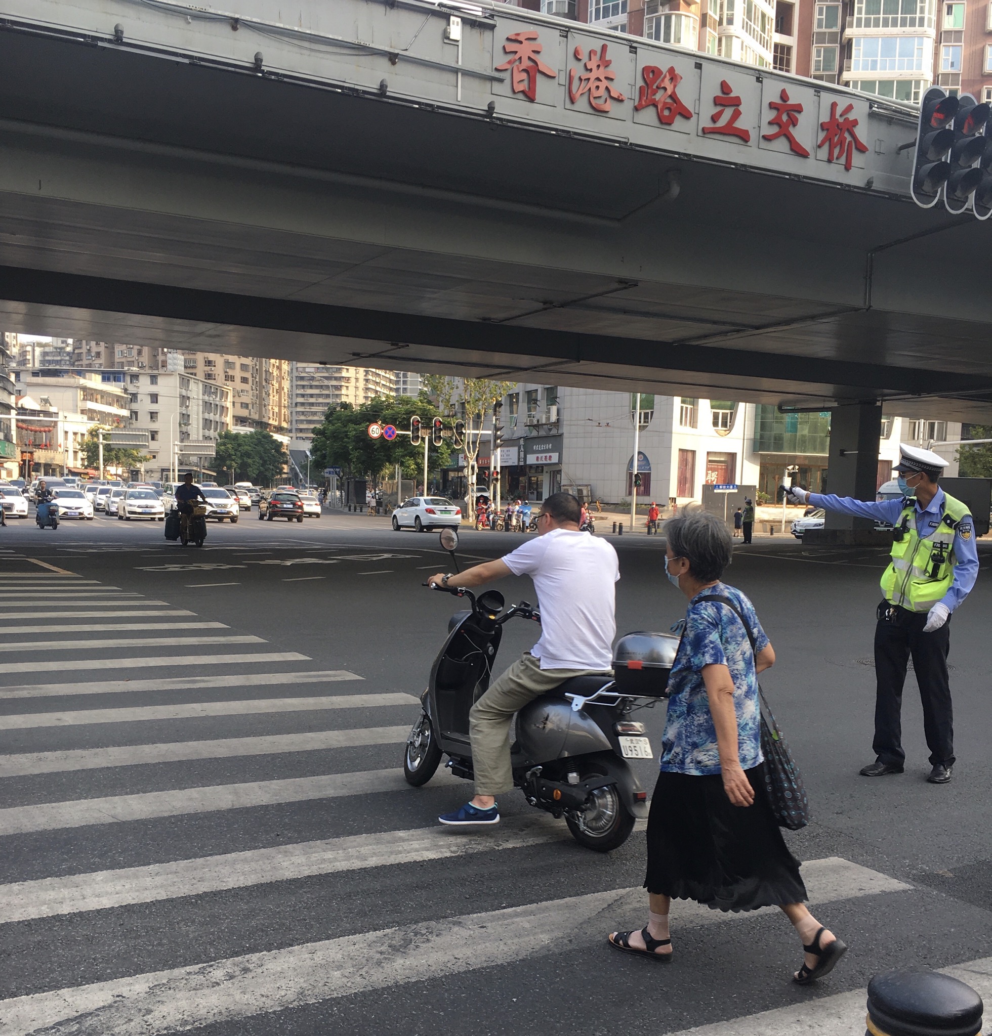 今年57岁的熊仁慧从事辅警工作11年了,是解放大道香港路口辅警班长。作为一名一线执勤辅警,在日常交通管理工作中,他认真负责,勤勤恳恳,积极协助民警加强路口的管理,受到了领导和同事的一致肯定。得知自己执勤的照片被发到网上,熊仁慧表示群众的肯定是我前进的动力,将以一如既往的做好交通管理工作。