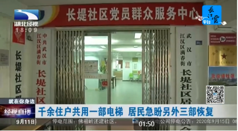 湖北经视《经视直播》的记者关注到此事,并到江汉区满春街长堤社区大夹街三期小区了解情况。据小区居民介绍,这个小区是还建楼,约有500户居民,但现在电梯仅剩一部可以使用,且这部电梯只到五楼,居民出行几乎都靠爬楼梯,非常不便。