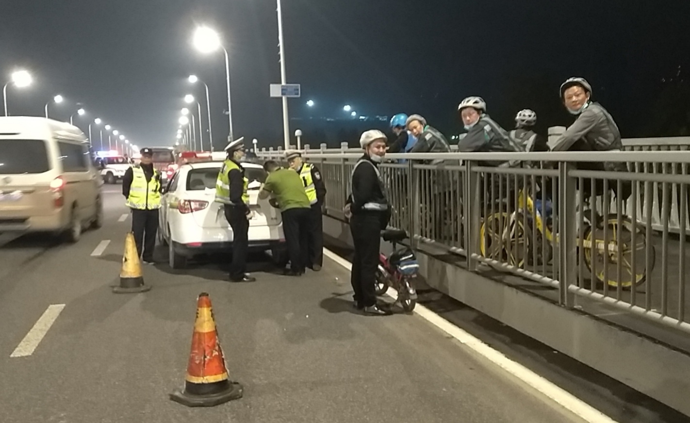 9月24日凌晨,硚口交通大队1组巡逻民警,在解放大道连续查获4起酒驾违法行为。被处罚后的驾驶员纷纷用手机叫代驾,结果吸引了一群代驾师傅们前来“揽活”——早点叫不啥事都没了。(通讯员 杜泽文 吕小鹏)