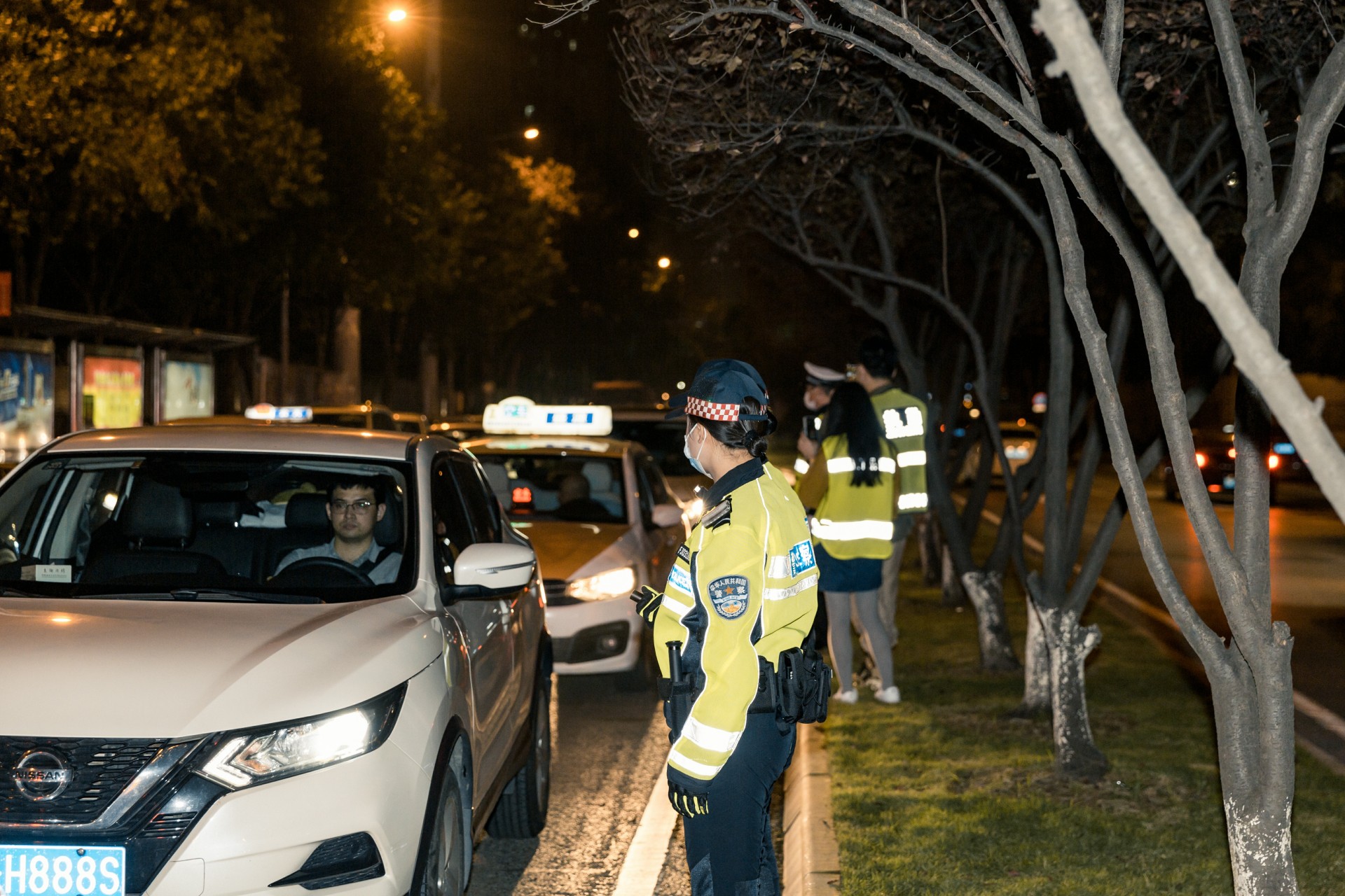 江岸交警严查夜间交通违法 为节日期间交通安全保驾护航