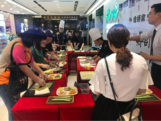 主厨现场演示招牌产品:现场制作霸气赤焰拼盘、芒果先生的坚果。