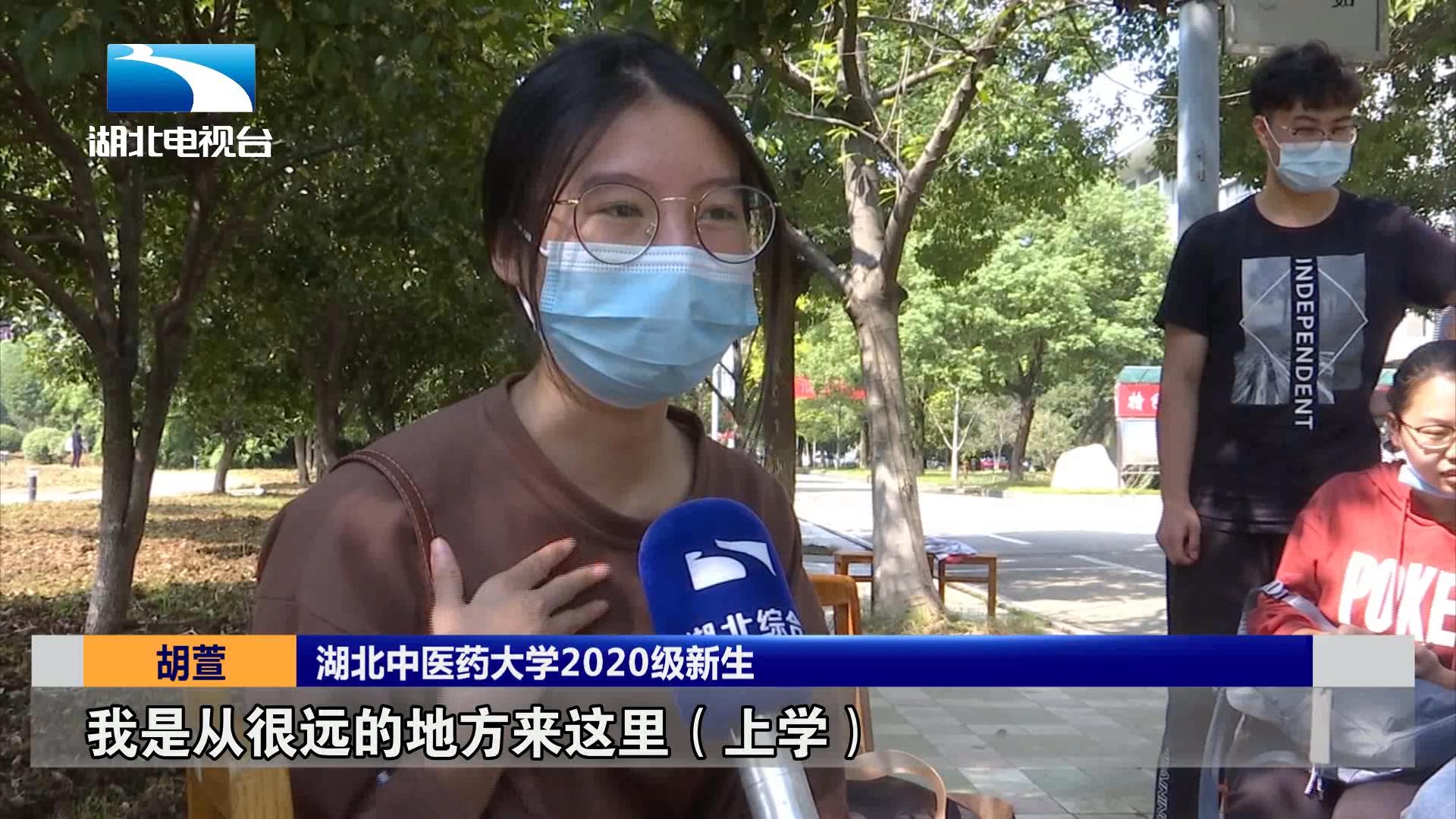 湖北中医药大学2020级新生 胡萱:我是从很远的地方来这里上学,也是想看看疫情后武汉到底是怎么样的,看到学校里充满了生机,还是非常开心的。