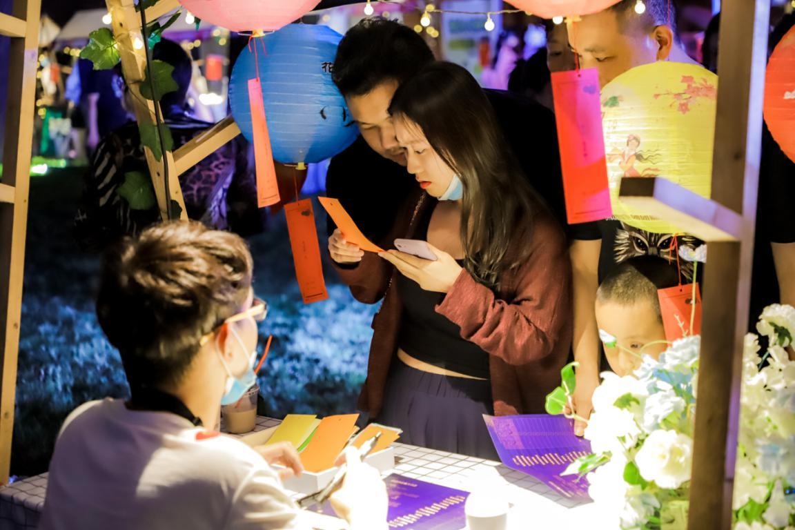一旁的融创·武汉1890的奇妙市集里,也热闹非凡。集上10-15枚游戏币,就能换个面人、剪纸、老武汉糕点,或者是张大人的文创T恤。这些互动参与感很强的小游戏,很快让不少摊点前都排起了长队。“哪个是金银花、菖蒲、藿香?“叶开泰国医堂摊位前的趣味猜药材活动,更让游客在游戏中长了知识。