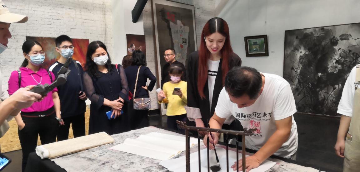 汉阳造汉艺空间,仍是浓浓的文艺味。10月1日上午,江中潮、李乃蔚十余位知名画家,展出了抗疫期间为汉阳创作的画作,并和现场游客进行了对话交流。