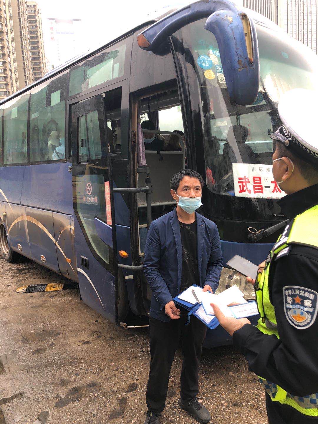 为保障节假日期间群众出行安全,武昌区交通大队结合“千名交警进企业”活动,安排民警驻守辖区客运站,“全天候”检查客运站出发车辆的安全情况。