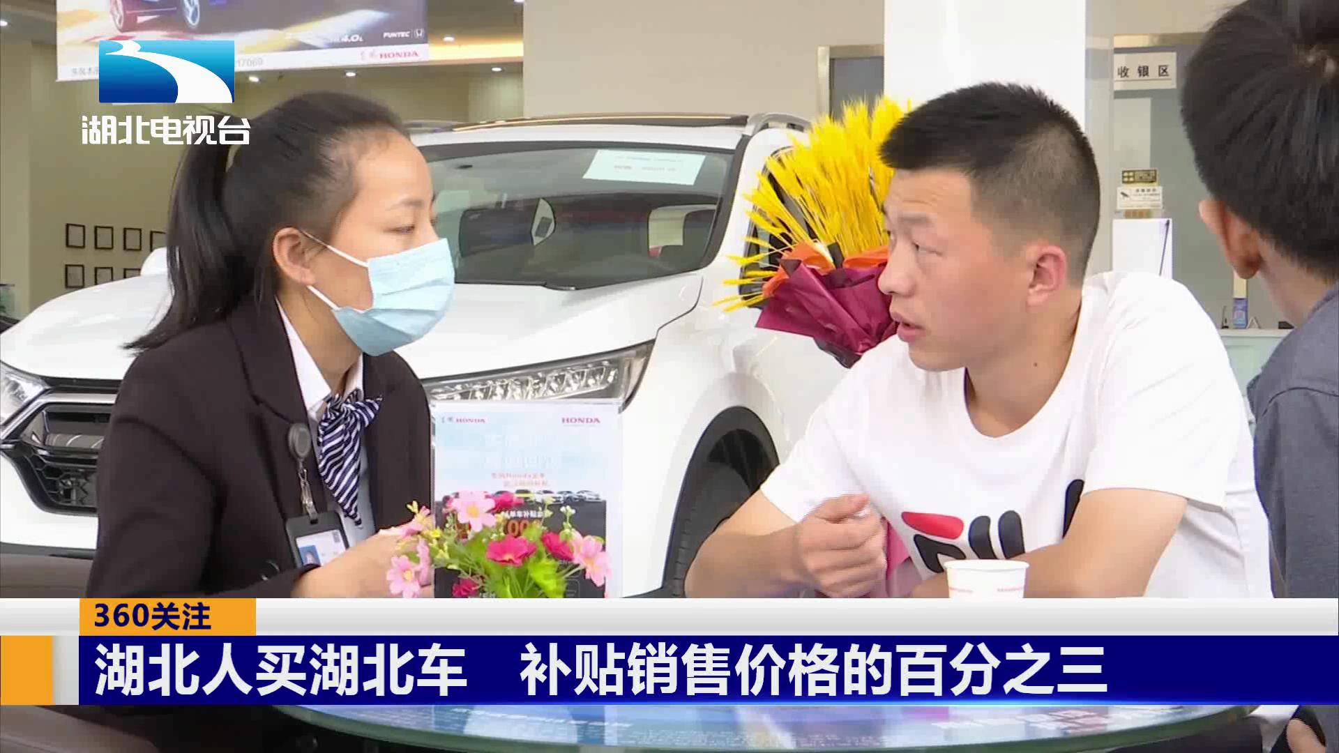 东风本田友芝友太子湖店总经理 王劲:20万元的车,按之前武汉市的购车政策补贴,最多只能享受到5000元。但是湖北省这次下发的购车政策补贴,目前来看是销售价格的3%,不设上限。也就是说20万的车,最高是可以享受到6000块钱的政策补贴。我们会等待湖北省的具体政策出来,按照更高的政策补贴去实施。