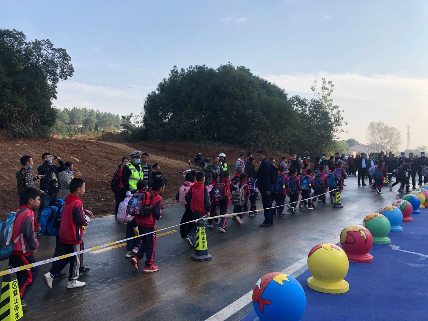 学校“搬家”,交警护航学生徒步至新校区