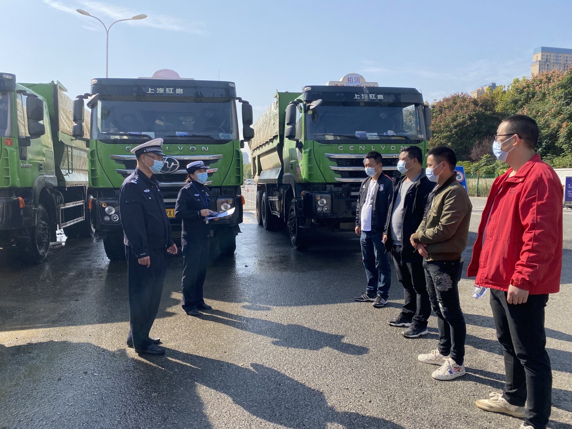 活动现场,民警认真察看每辆渣土车车身墙板、放大字样、前后号牌,对车容不洁、号牌不清等情况现场开展整改工作。随后,民警罗琳以案说法,通过一个个真实的案例讲解了渣土车因车身不洁、漏洒泥土、滥用灯光引发的道路交通事故,并详细解读《中华人民共和国道路交通安全法》对于此类违法行为的处罚规定,以及驾驶员故意污损号牌所带来的严重后果,再三叮嘱企业负责人、驾驶员一定要引以为戒,加强自查自纠。