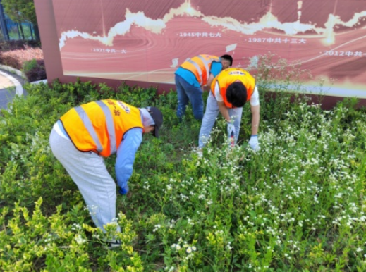 中国一冶燕岭花园还建小区项目团支部青年突击队开展除草义务劳动