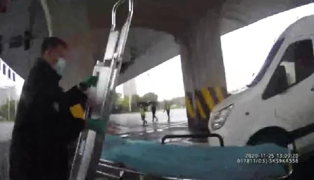 医护人员初步断定该男子突发疾病,现场和民警一起将该男子抬上担架,并启动“警医”联动机制,为驾驶员开辟绿色救治通道,迅速将驾驶员送往最近的武汉协和医院(西区)进行抢救。