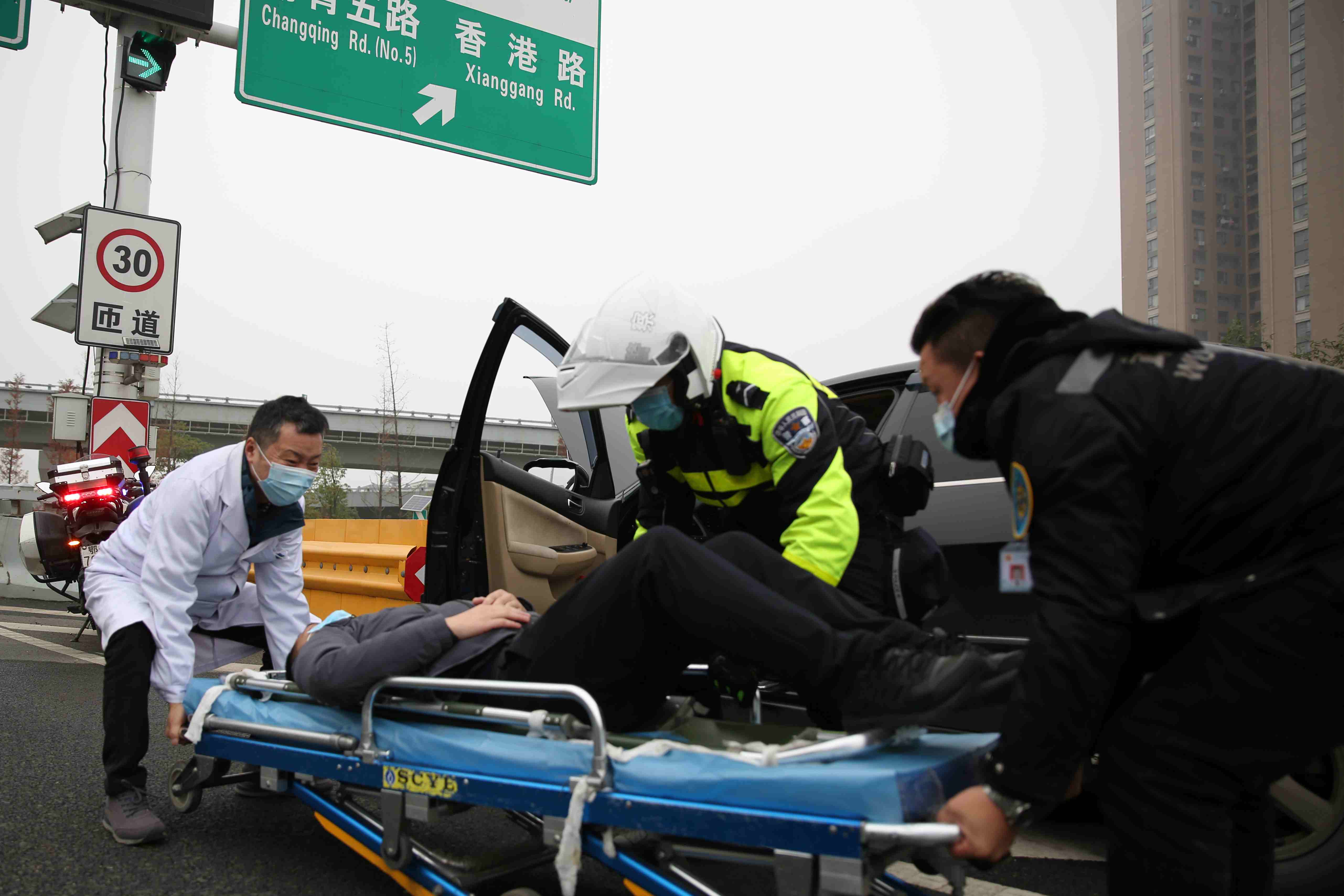 为进一步提升城市冬季恶劣天气下道路交通事故应急处置能力,建立健全交通事故应急救援管理机制,2020年12月10日上午,江汉区交通大队联合医疗救护、清障救援、警保联动等部门开展交通事故应急救援实战演练。