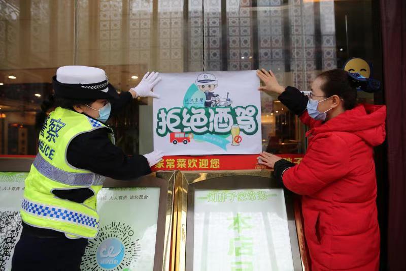 岁末年终聚会多,自然少不了借酒助兴,为防止酒驾、醉驾引发道路交通事故,近日,江汉区交通大队民警携手辖区餐饮企业,积极开展“零酒驾”街区创建活动。