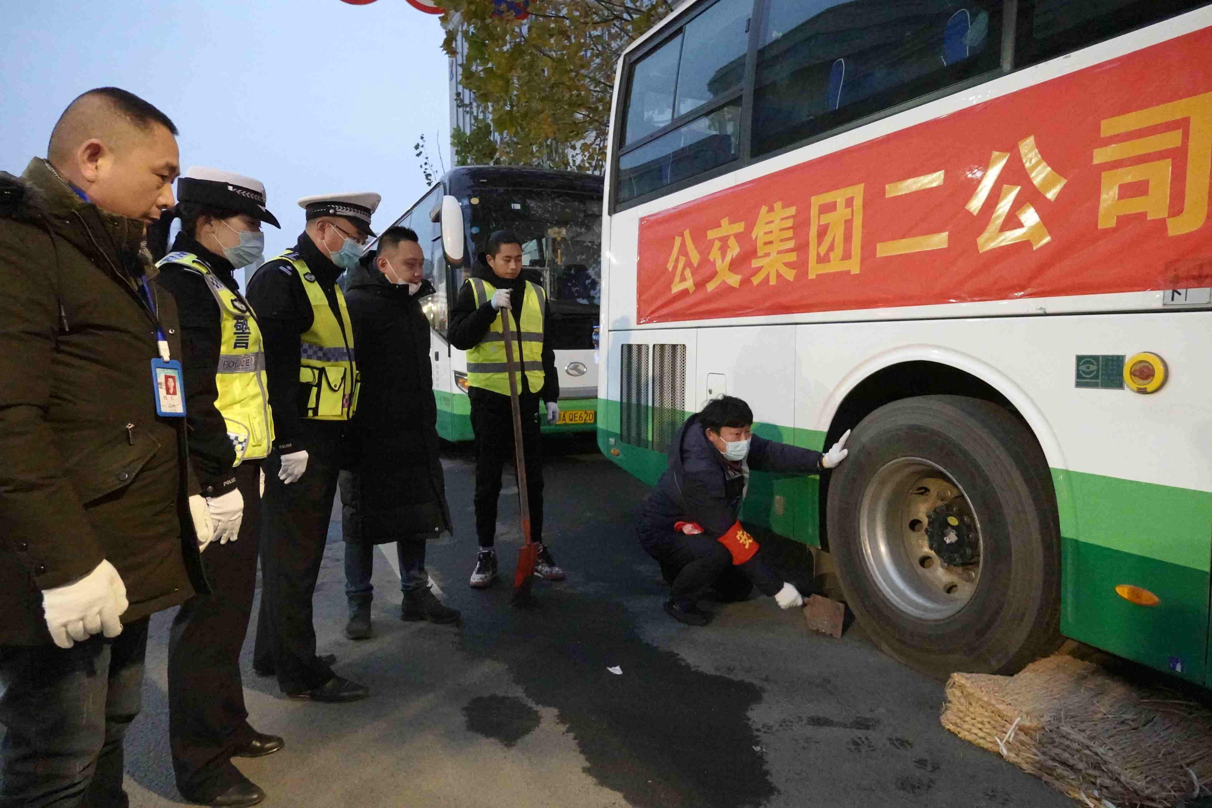 一场降雪如期而至,为进一步做好公交车冬防春运交通安全管理工作,2020年12月14日早上6时,江汉区交通大队民警来到位于汉口火车站的公交292路起点站,对雨雪天气防范工作开展情况进行检查,并联合武汉市公交集团第二营运公司二分公司开展冬防春运应急演练活动。