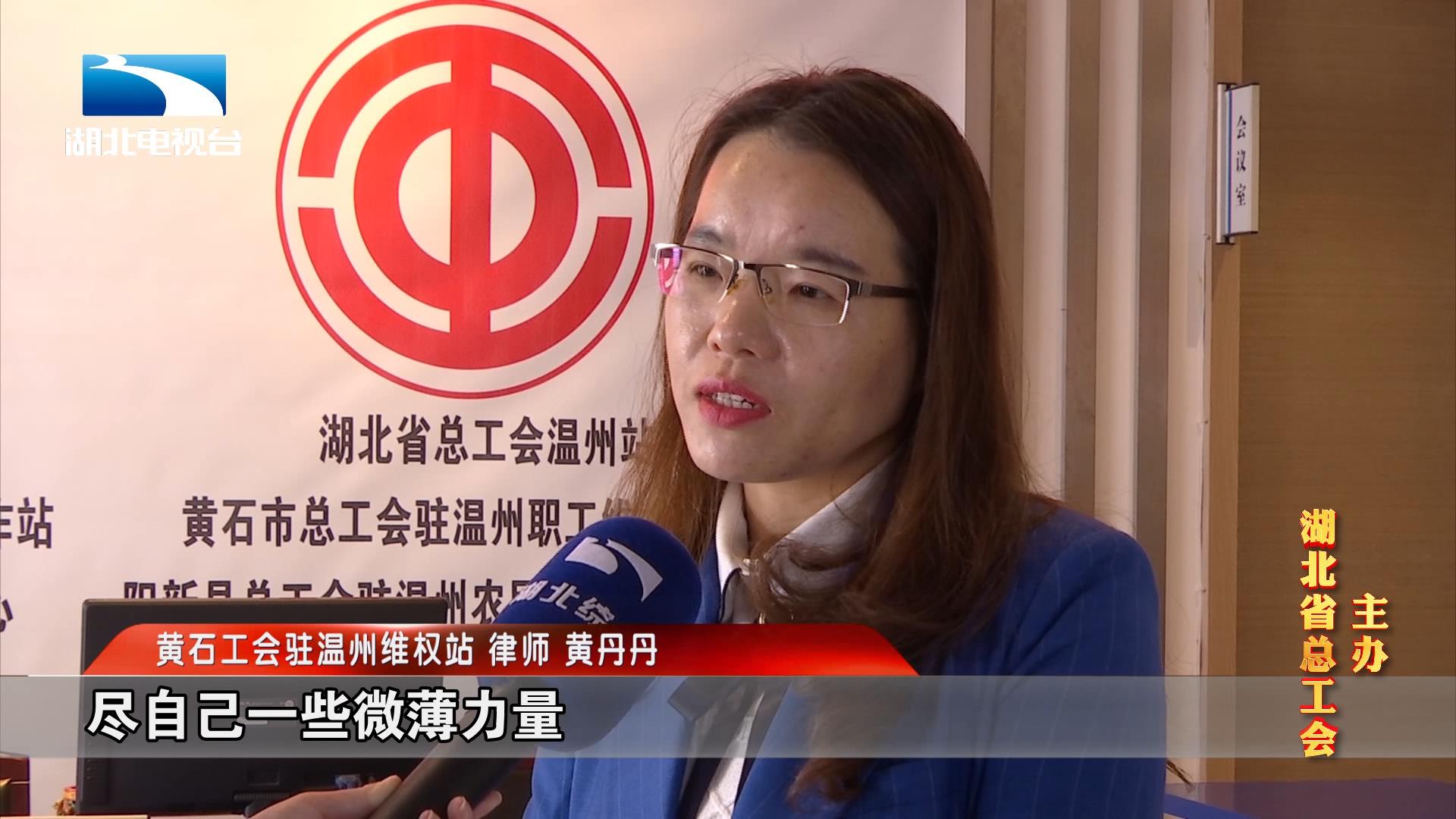 黄石工会驻温州维权站 律师 黄丹丹:最初学法律的目的,就是为了给这些务工人员维权。尽自己一些微薄力量,给需要帮助的人提供帮助,让自己也有一点被需要的感觉,心理上有满足感。那些务工人员拿到赔偿的时候,就会打电话跟我讲,黄律师,谢谢你啊,我的钱拿到了,感谢感谢!