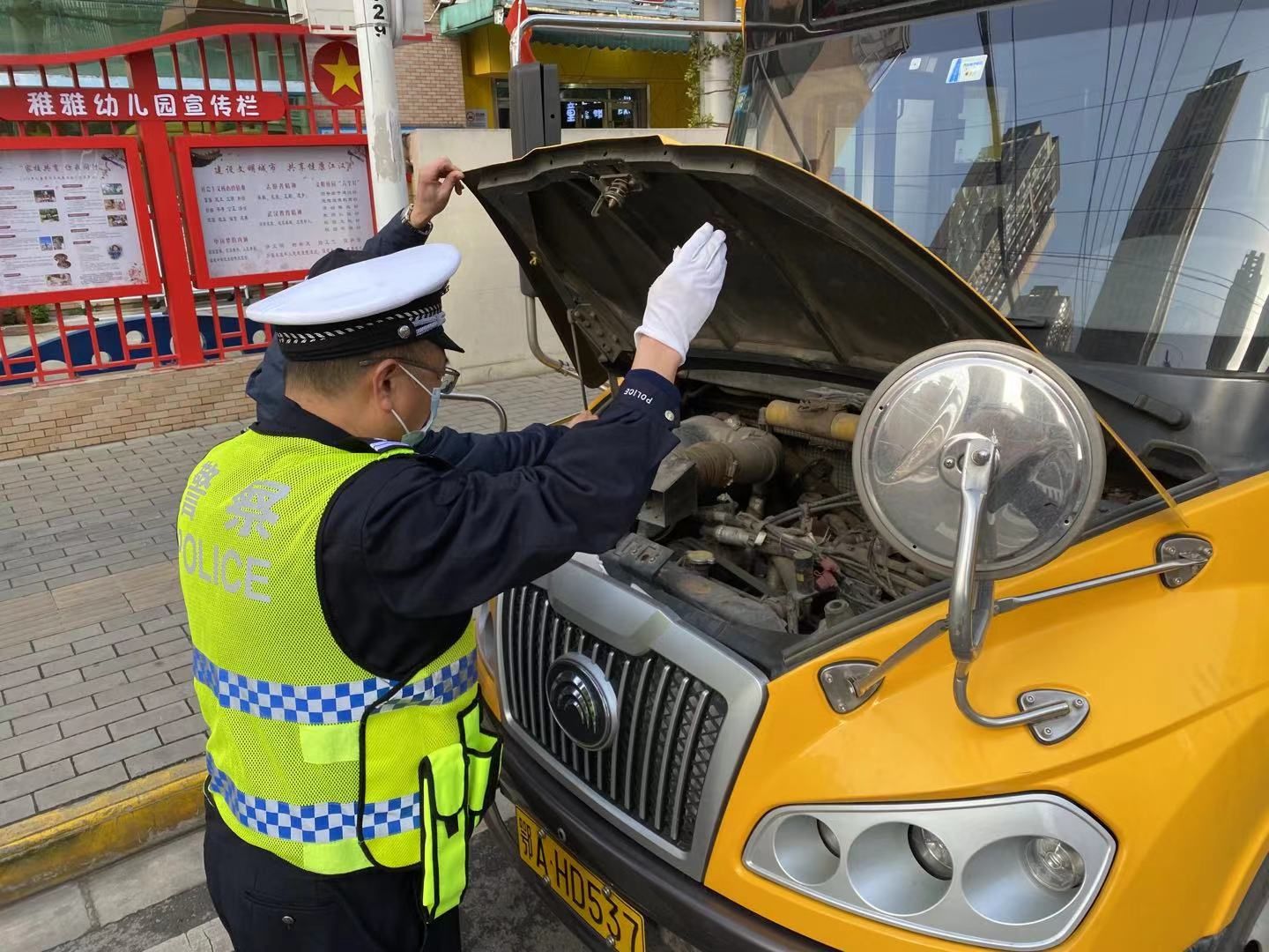 随后,民警认真检查了校车内灭火器、安全锤、医药箱等安全防护设施的配备情况,对车辆的机件安全设施进行检查,再三叮嘱驾驶员严格遵守道路交通法规,始终牢记安全驾驶,做到专车专用,并利用假期加强车辆的维修和保养工作,确保车辆始终处于良好的运行状态,未雨绸缪,提前为3月份开学做好准备。