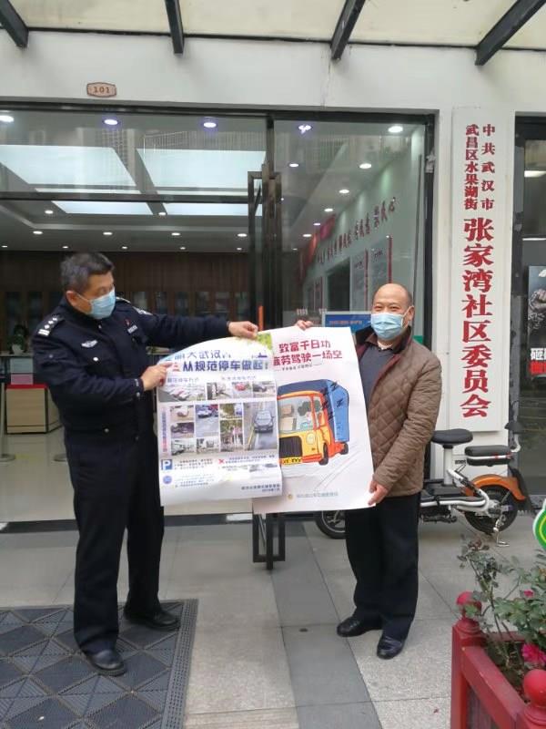 2月4日上午,武昌区交通大队车管中队民警刘学锋早早地来到武昌区水果湖街张家湾社区。为营造春运交通安全氛围,刘学锋在社区显眼位置张贴了文明停车、不疲劳驾驶、不超速驾驶、严禁酒后驾驶的海报及警示标语,扩大范围提高市民春运出行交通安全意识。同时,为推广交管业务“网上办”,还为社区服务站分发了“学法减分”的操作流程和普惠共享优政策。