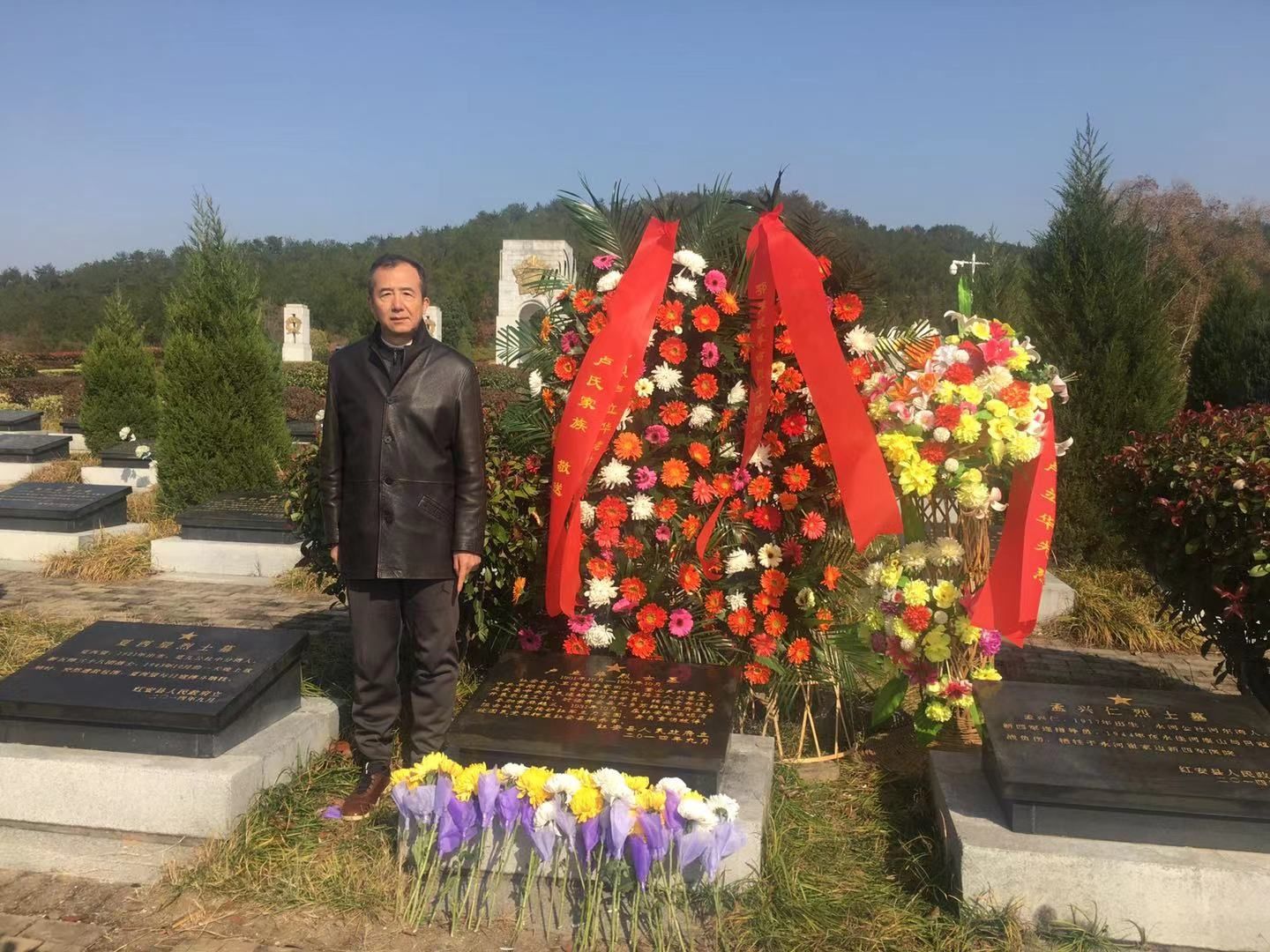 作者卢纲在鄂豫皖中心烈士陵园纪念红军前辈