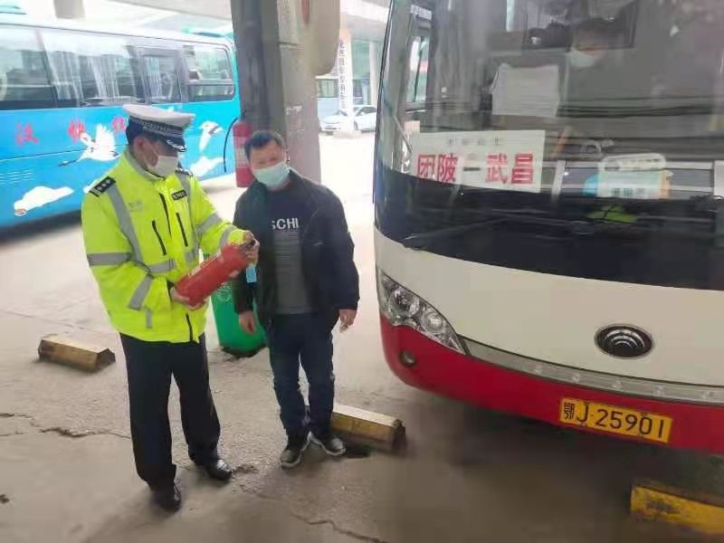 “请大家系好安全带!”昨日,在付家坡客运站的一辆长途客运车辆上,当记者见到武昌区交通大队车管民警陆华生时,他正在给乘客温馨提示,并对车辆的安全设施进行检查。