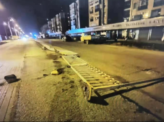 (被撞倒的护栏)