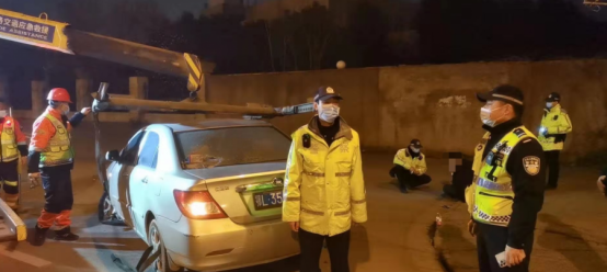 大年初二。晚上8时许,武汉洪山区交通大队快骑机动队在青郑高速收费站检查点开展专项整治。一辆号牌为鄂L3***6的小轿车驶出收费站口突然强行冲岗并加速逃走。带队民警组织警力对该车辆进行拦截。