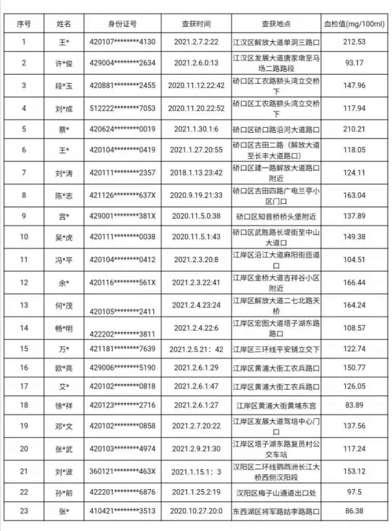 (23起醉驾行为违法者名单)