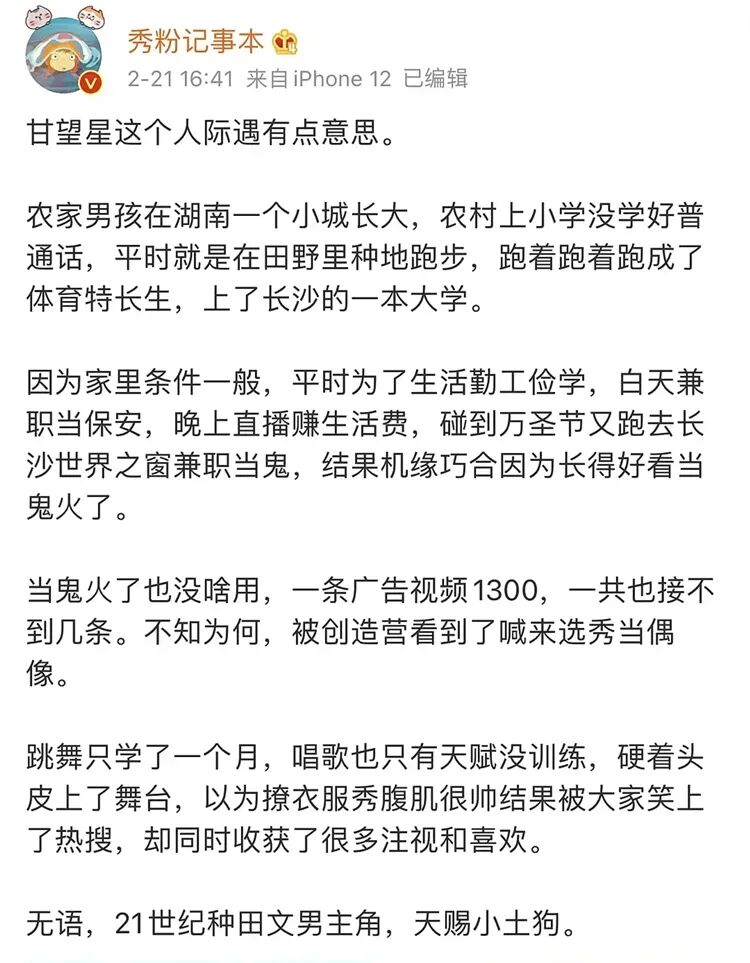 有人发现,其实甘望星在当“鬼”之前就已经签约公司了↓