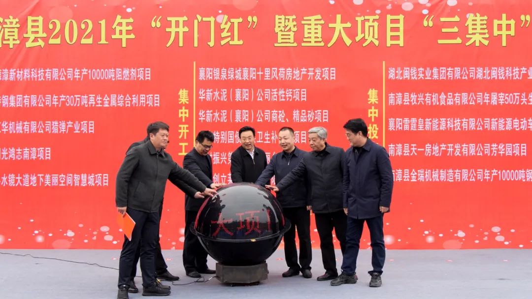 3月1日,南漳县举办2021年“开门红”暨重大项目集中签约、开工、投产仪式。王鹏、陈栋、郑风元、张功玉、许红洲、李晓佳、项云峰、程谦武、方军等县“四大家”领导和企业家代表出席活动。