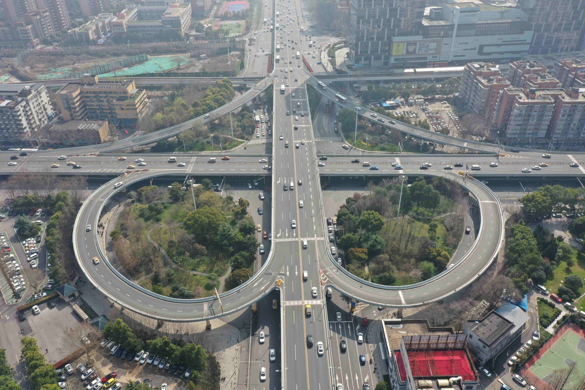 从大年初八开始,江岸交警逐步展开了对该路口的改造和调试。先后经历了打开西侧封闭护栏、四个方向车流推磨式试放行、东进口禁止左转、北进口禁止左转、增加左转待驶区、南北路口直行错时放行等六次精细化调整,同时不断优化交通标志标线。在打通路口内循环的同时,交管部门还对解放大道卢沟桥路等相邻路口进行外部管控,通过增设路口信号灯、分时段优化配时等方式从外部均衡交通流量,这样“里应外合”共同减轻解放大道黄浦大街路口的通行压力。
