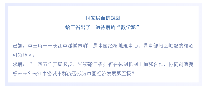 叶青:俗话说远亲不如近邻,湘鄂赣三个省挨得很近,每个省的经济特点都能够被另外两个省的民众认可,产业之间也存在差异,因此整个中三角的经济总量可以做大。而中三角,如果想要在“十四五”期间上升到国家的战略平台,政府之间合作只是一个方面,更重要的是企业的参与,三省产业链要相互关联和协同发展。