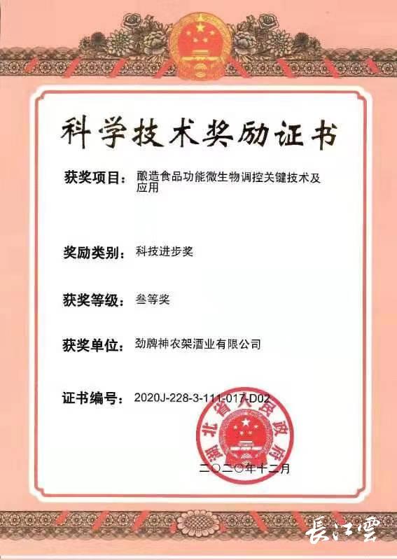 劲牌神农架酒业荣获湖北省科技进步三等奖