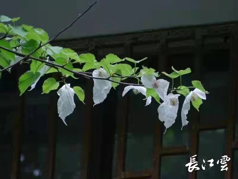 4月20日,在华中科技大学南三楼东北角,堪称“国宝级植物”的4棵珙桐静静绽放,洁白的花朵含露而绽,让人流连忘返。