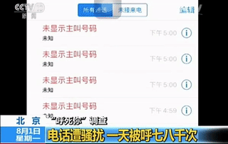 7月15日下午4点多,北京的聂先生在上班时突然不停地有电话呼入,响一声就挂断,想接接不起来,试图拨过去却“未显示主叫号码”,这样的骚扰电话平均一分钟打进来五次,持续了足足20个小时,一天下来,打了将近七八千个电话。