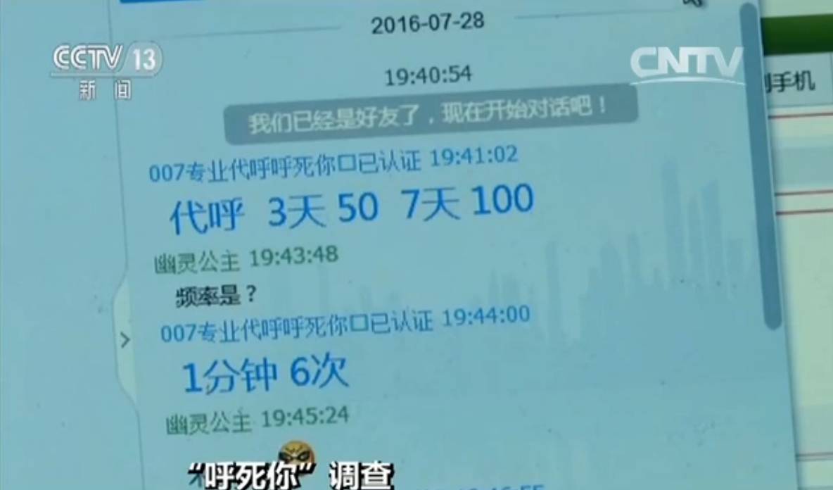 记者随机进入一家网站询价,卖家称,只要给电话号码就可以操作,明码标价,三天50元,七天100元,一分钟呼叫频率6次。