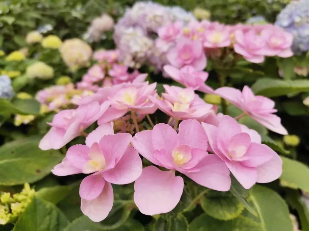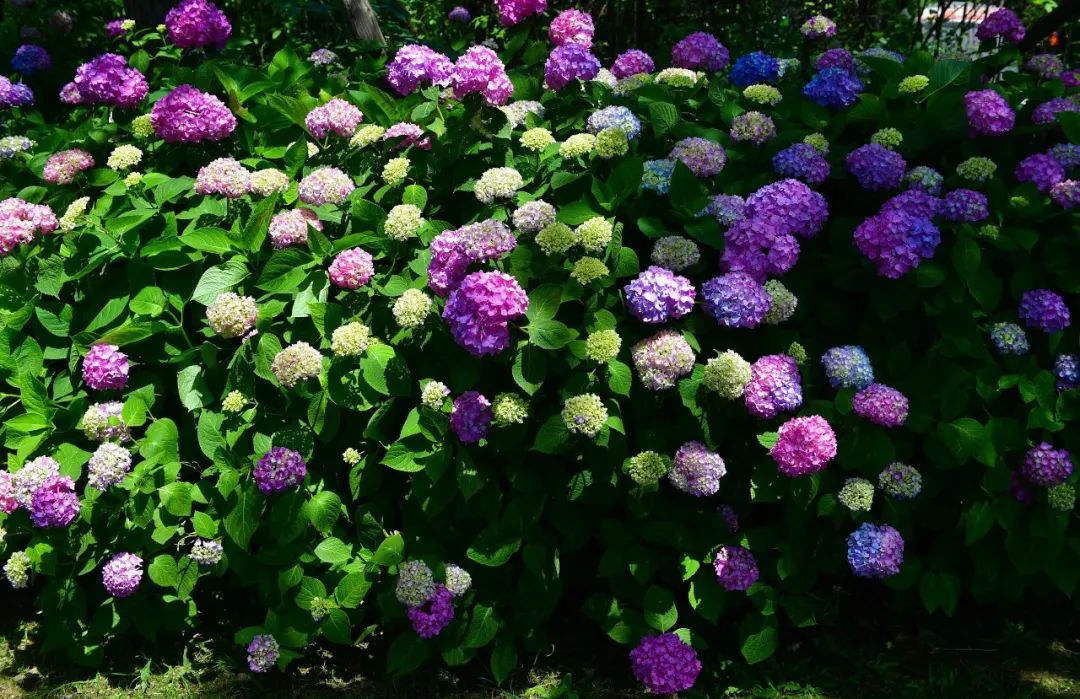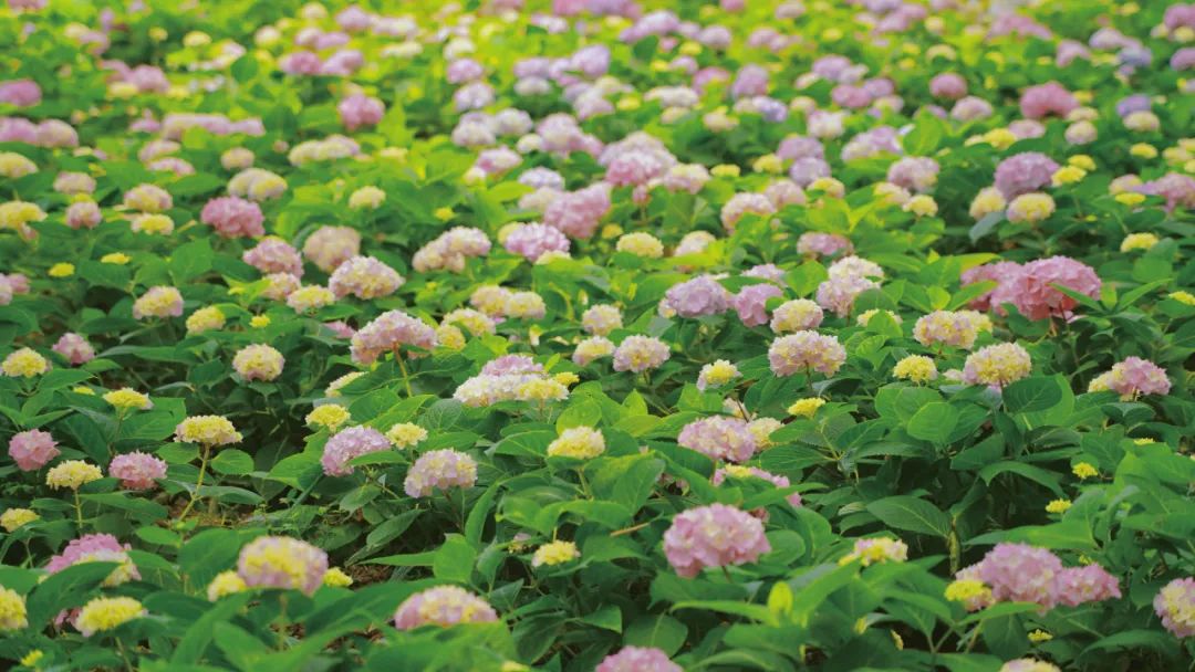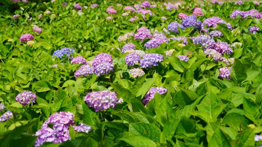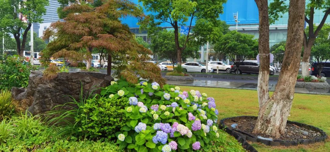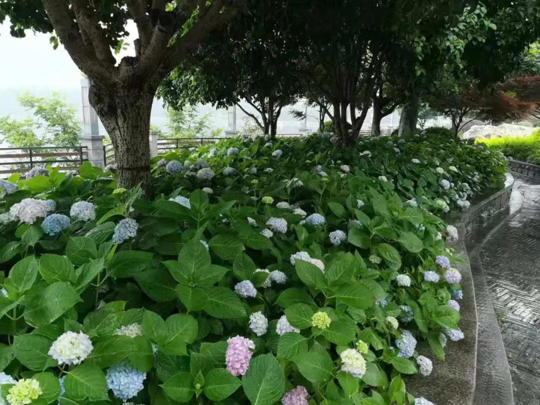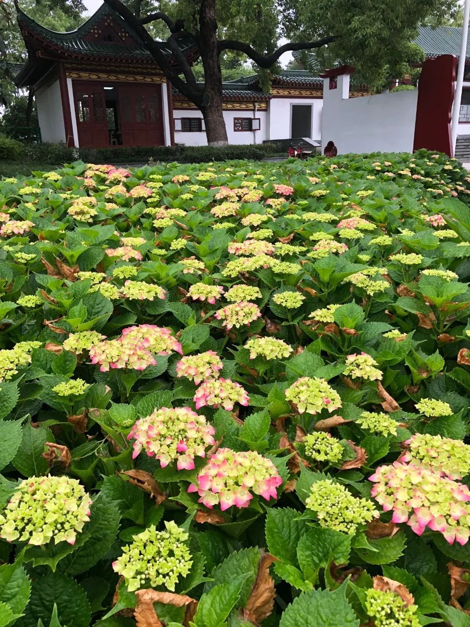 武汉不少公园广场,都种植了大片的绣球花,大部分是颜色丰富,花期长达一两个月的“无尽夏”。此外,还有“玫红妈妈”“雷古拉”“奥塔克萨”等品种。