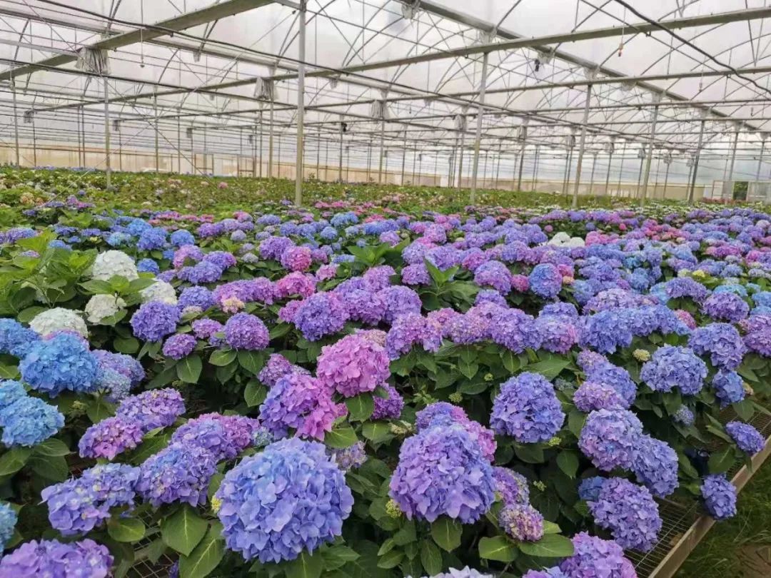 除了公园,武汉还有一个特别的地方,是绣球花集中之地,那就是位于东西湖张柏路的柏泉苗圃。面积1.2万平方米的大棚,专门用作培育绣球花。