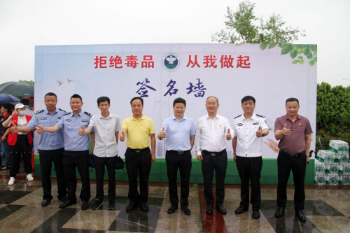 为迎接第34个国际禁毒日,武汉市东湖高新区龙泉街道联合区公安分局禁毒大队,开“6·26”国际禁毒日”宣传活动。活动结束后,参与领导、干部、群众纷纷在签名墙上进行拒毒签名。