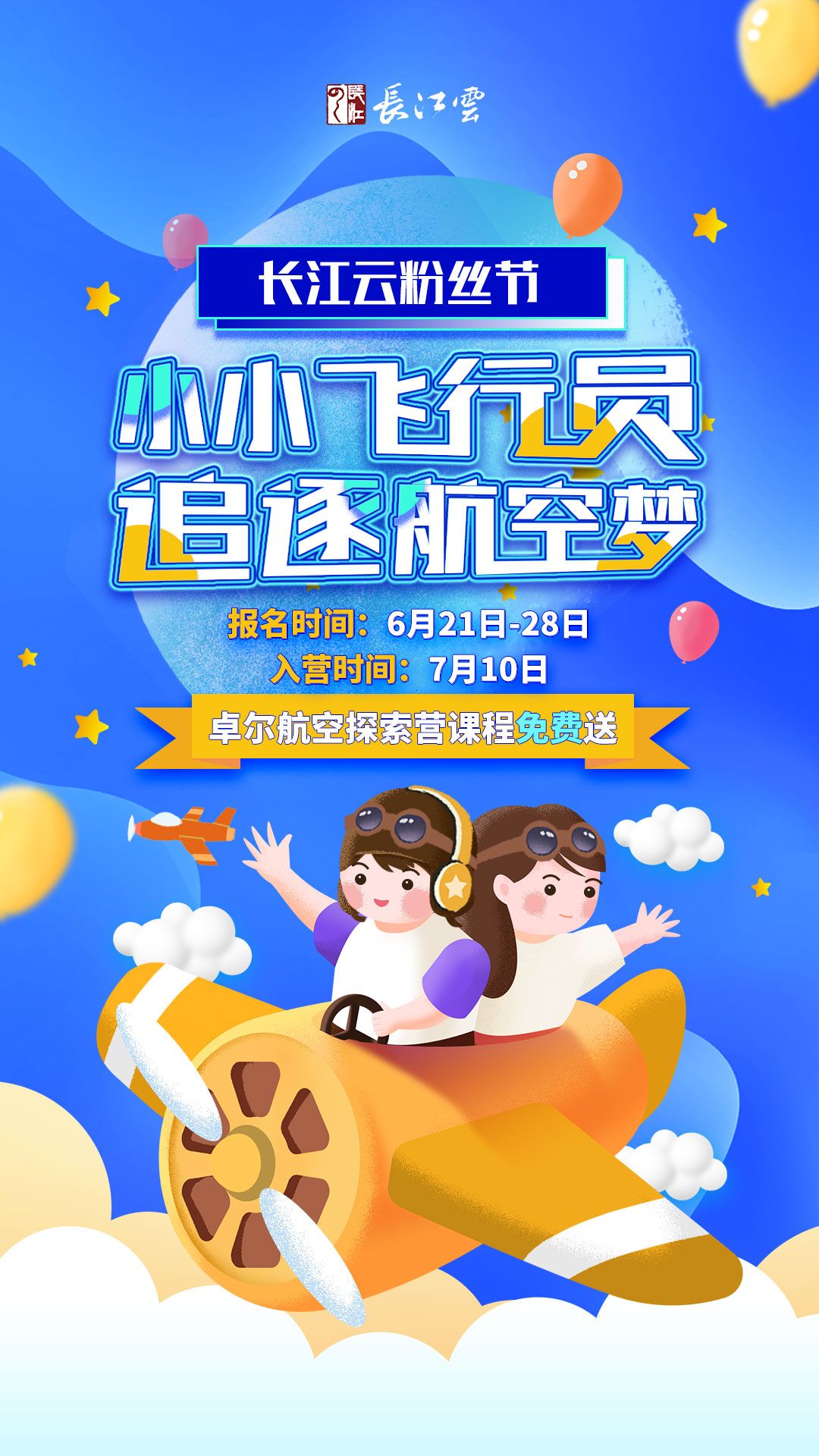 带着这样的梦想,我长大了,知道了人是飞不起来的,但了不起的科学技术却能帮助我们实现这些个目标!乘坐着我们自己科学家研发的飞机飞船,我们不但能在天空中自由飞翔,还能乘坐宇宙飞船,到我们中国人自己的太空站,去探索宇宙的无穷奥秘。希望由长江云举办的“小小飞行员 追逐航空梦”这个活动能满足一下我这个小小愿望,感受航空科技带给我们的奇妙感受!