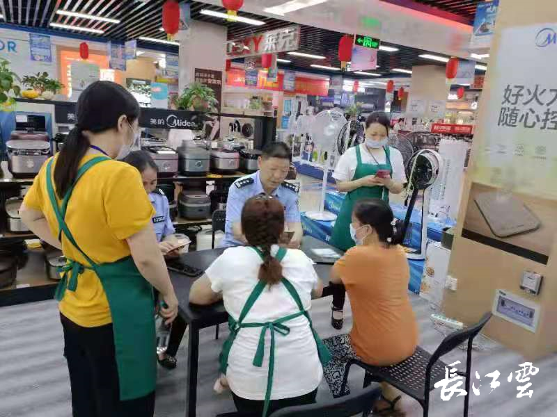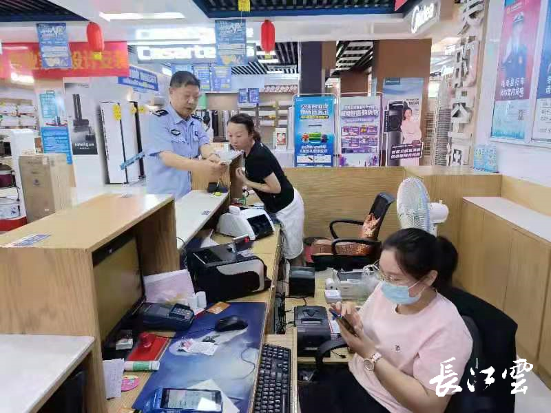 随后,古台社区民辅警深入工贸家电商场,面对面向职工讲解反电诈知识,针对近期发案情况用真实案例提醒广大职工管理好身份证、银行卡及个人信息,提高保护意识。最后,古台社区民辅警围绕商场内部安全,开展了深入细致的检查,指出6个安全隐患,提醒相关单位加强内部安全风险隐患排查整改,确保企业安全发展。