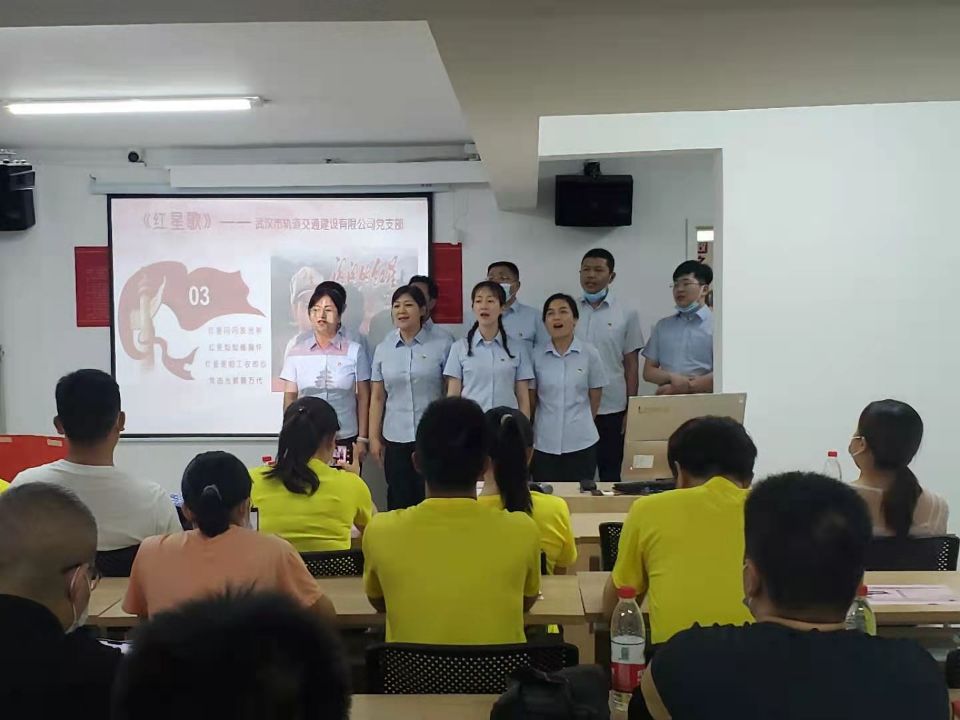 在完成文件学习、预备党员转正等规定动作后,大家一同唱响红歌,为党庆生。下沉党员、辖区共建单位及社区工作人员用《我和我的祖国》《唱支山歌给党听》《没有共产党就没有新中国》《毛主席话儿记心上》表达了对祖国的炽热情感,以及万众一心、坚定跟党走的决心和信心,让大家仿佛走进了那段激情燃烧的岁月。下沉单位武汉市轨道交通建设有限公司演唱的《红星歌》让在座的党员时刻铭记那硝烟弥漫的年代,嘹亮的歌声唱出了党员们心中的热情与敬佩。