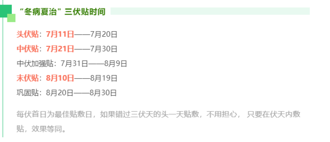 夏天的“三伏”天是一年中最炎热的时候,此时阳气发泄,气血趋于体表,皮肤松驰、毛孔张开,利用药物渗透皮肤,刺激穴位,可起到疏通经络,调节脏腑,温阳利气、祛散伏痰的功效。