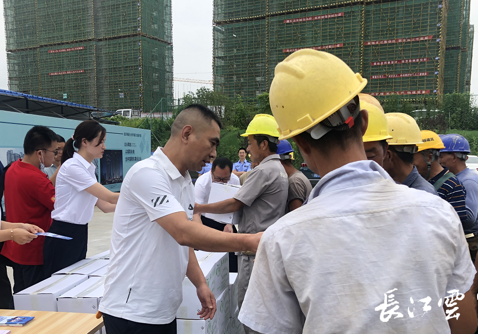 7月16日上午,荆门市东宝区人社局、工商银行东宝支行在项目工地联合开展2021年夏季“送法律、送政策、送清凉”活动。